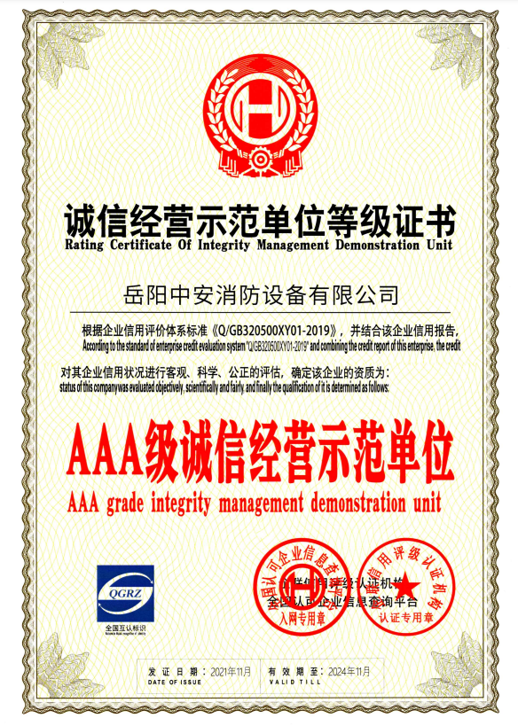 岳陽(yáng)中安消防設(shè)備有限公司成立于2015年,其前身是成立于1999年的岳陽(yáng)中安消防水暖器材經(jīng)營(yíng)部。是一家集工程施工、維護(hù)保養(yǎng)、器材及設(shè)備銷售一體的高品質(zhì)消防設(shè)施建設(shè)及服務(wù)的公司。